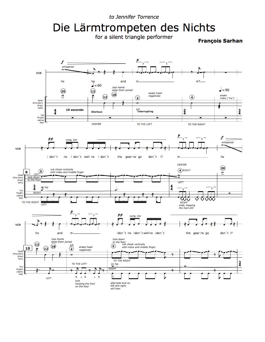 The latent desire behind all the actions, movements and sounds I thought of in No Say No Way is to show what is before the performance on stage. To talk, to play, to perform, to compose presupposes a braid of solved questions. If these questions are not solved, one is not able to reach the stage of showing it, whatever it is. But if one questions all the factors which allow the performance to take place, hence taking the risk of infinite regression, then there will arise a number of ghosts and repressed fears, painfully dominated by years of repetition, reasoning. Opening this Pandora box is opening the unconscious of everyone who came on stage to play a piece of music, an instrument in the hand, the score in the other, and the head full of fear and expectation. Turning pages, adjusting the seat, trusting the fingers, tuning, concentrating on the very moment of the production of the sound, it all connects to exorcism, magic and irrational relation to the world. Who didn’t make a wish before going onstage?