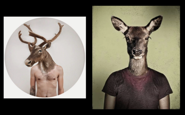 The second etude is an extended collage of deer images displaying human-kind's complex entanglement and fascination with deer: humans dressed as deer, hunting deer, worshiping deer, eating deer, and even falling in love with deer.