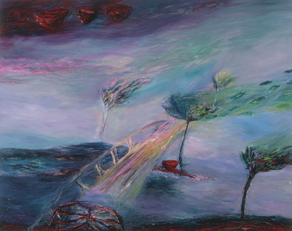 Keith Haring (1958–1990): Nimetön, 1986, muovimuste pressulle, Tate Gallery, Lontoo. Haringin maalauksen voi nähdä/lukea dystopiana, jossa koko maailma on pelkkä hyperaktiivinen väkivallan ja riiston koneisto – pienistä lemmenpilkahduksista huolimatta – mutta antoisampaa lienee keskittyä maalauksen siihen puoleen, joka ihastelee ja ylistää elämän-maailman-luonnon kuhinaa, luonnonkierron surkuhupaisaa raivokkuutta, kiistämättä sitä, että siinä kurimuksessa yksilön osa on usein tuskaisa, mutta hakien lohtua siitä, että kokonaisuus on niin täynnä elinvoimaa. Näin ajatellen tämä maalaus on tunne-elämän ei-moraalista venyttelyä ja turboahtamista uhkeamman olemassaolonkokemuksen saavuttamiseksi.