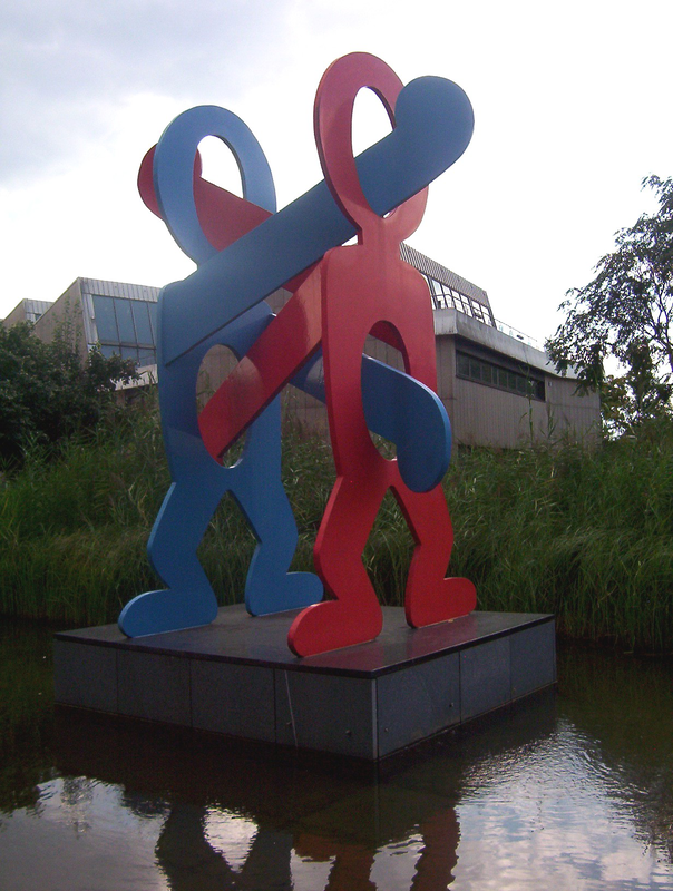 Keith Haring (1958–1990): Nimetön, 1986, muovimuste pressulle, Tate Gallery, Lontoo. Haringin maalauksen voi nähdä/lukea dystopiana, jossa koko maailma on pelkkä hyperaktiivinen väkivallan ja riiston koneisto – pienistä lemmenpilkahduksista huolimatta – mutta antoisampaa lienee keskittyä maalauksen siihen puoleen, joka ihastelee ja ylistää elämän-maailman-luonnon kuhinaa, luonnonkierron surkuhupaisaa raivokkuutta, kiistämättä sitä, että siinä kurimuksessa yksilön osa on usein tuskaisa, mutta hakien lohtua siitä, että kokonaisuus on niin täynnä elinvoimaa. Näin ajatellen tämä maalaus on tunne-elämän ei-moraalista venyttelyä ja turboahtamista uhkeamman olemassaolonkokemuksen saavuttamiseksi.