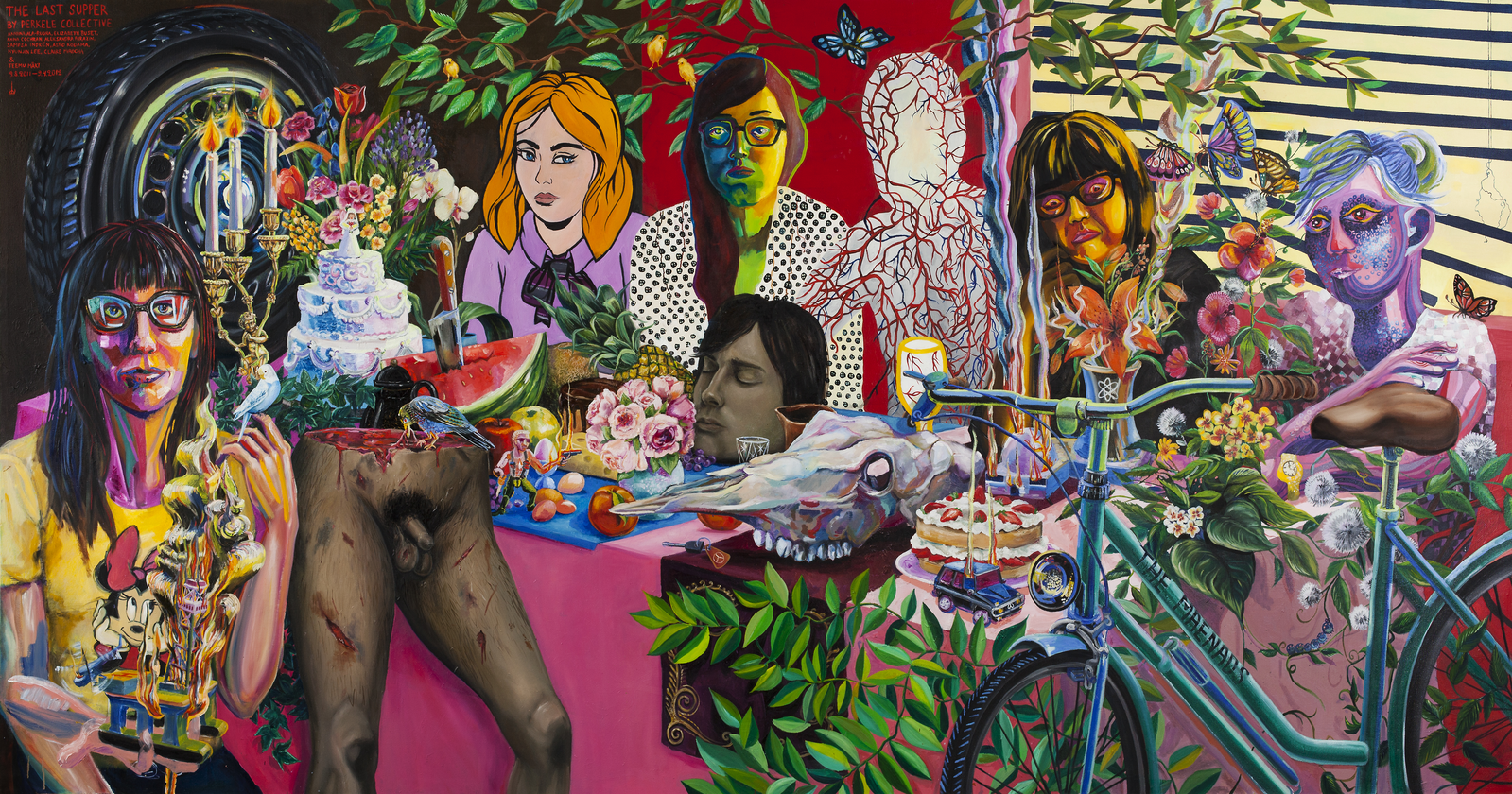 Teemu Mäki: Vittupää / The Pussyhead, 2002–1.12.2006, öljy kankaalle, 360 x 782 cm. http://www.teemumaki.com/alleg_pussyhead.html