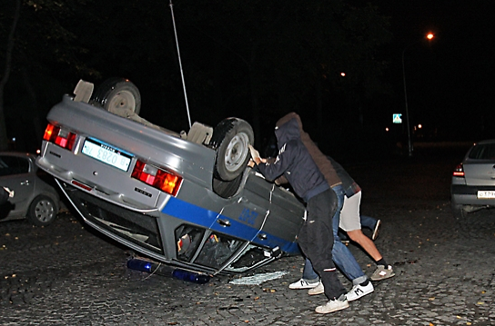 - Missä pehmoleluni on?, performanssi/aktio (15.11.2010, Pietari, Venäjä), jossa ryhmä käänsi muutaman poliisiauton katolleen ja pidätettäessä väitti vain etsineensä kadonneita lelujaan.