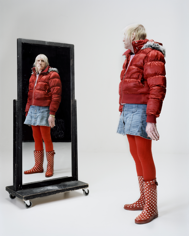 Teemu Mäki: Ursula leikkimökissään, 2006, kromogeeninen digitaalituloste pohjustettu alumiinille, 83 x 103 cm. Sarjasta Miten olla mies tai nainen? (kamera-assistenttina Kenneth Bamberg) http://www.teemumaki.com/teemumakiphotography.html