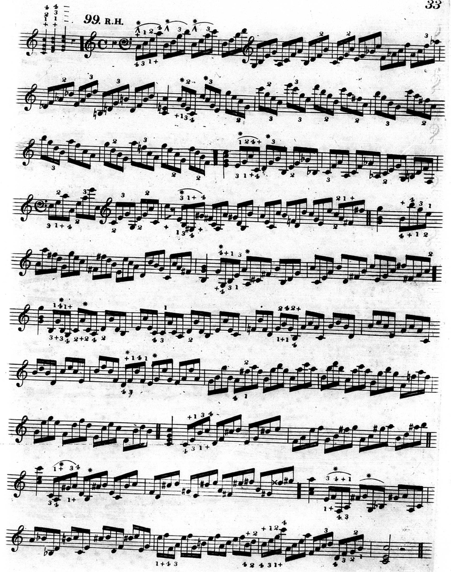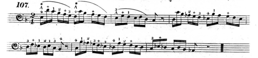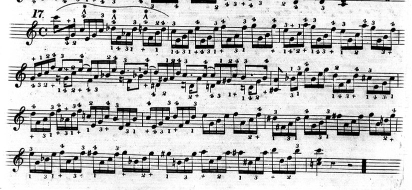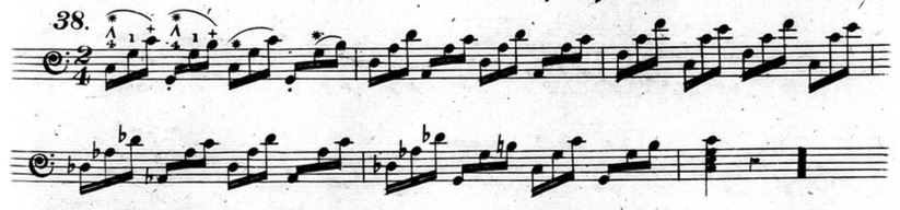 In figures 3.3.32-33, a star is placed on every high note, effectively making those notes a musical line. This is further confirmed by the chords that Hummel gives before each exercise.