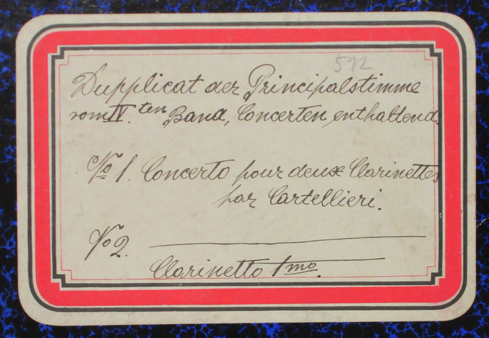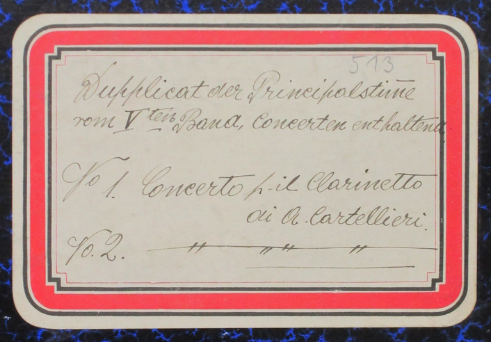 Fig. 5 - Front page of the Collection of principal part No. 5, in which are contained two clarinet concertos by A.C. Cartellieri (CZ-Pk 513).