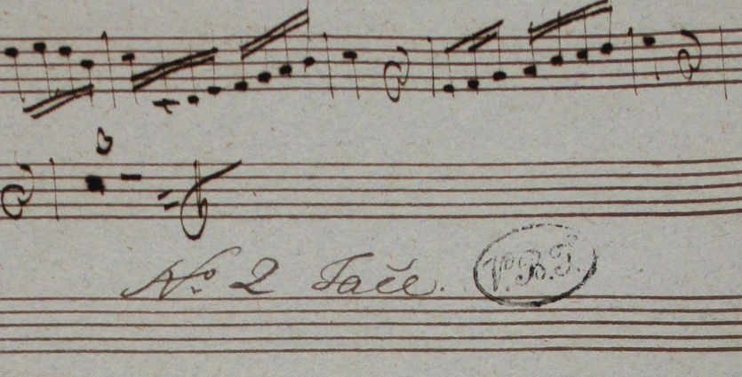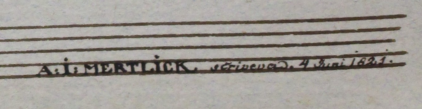 Fig. 4 - Last page of the Violin parts.“A: I: Mertlick. Scriveva. 4 Juni 1821” (A: I: Mertlick. wrote. 4 Juni 1821). (CZ-Pk 512).