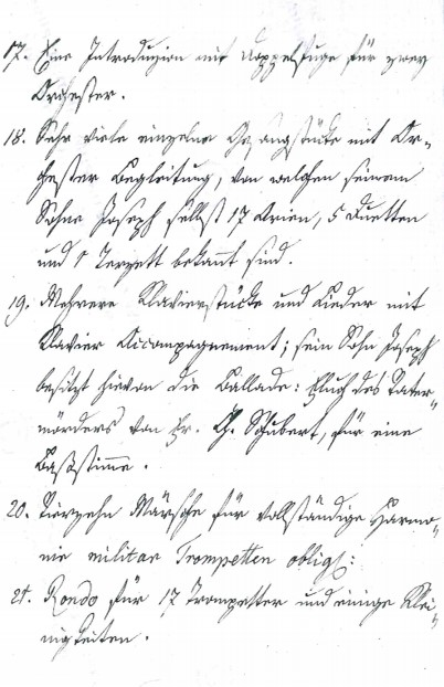 19. Some compositions for piano and songs with piano accompaniment; his son Joseph had the ballade for bass voice, “Fluch des Vatermörders” di Mr. Ch. Schubert.