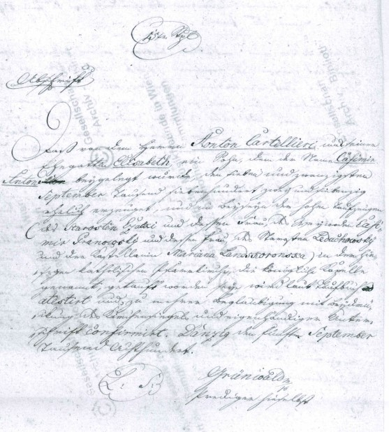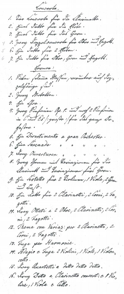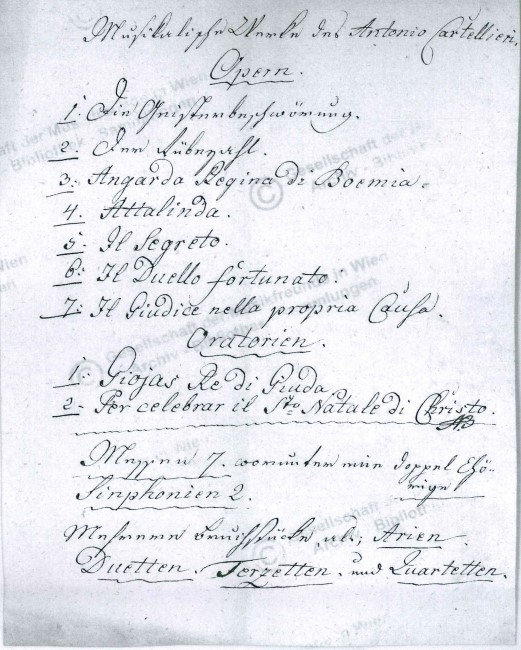 1. Report by Joseph Cartellieri to the secretary of the Gesellschaft (für Musikfreunde) on the life of his father Casimir Anton Cartellieri with a list of his compositions (December 16, 1826).