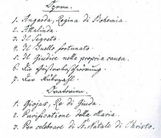 18. A lot of single vocal composition with orchestral accompaniment, of which the son Joseph, knew 17 arias, 5 duets, and 1 terzet.