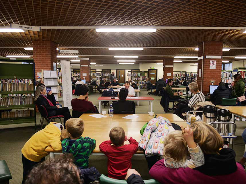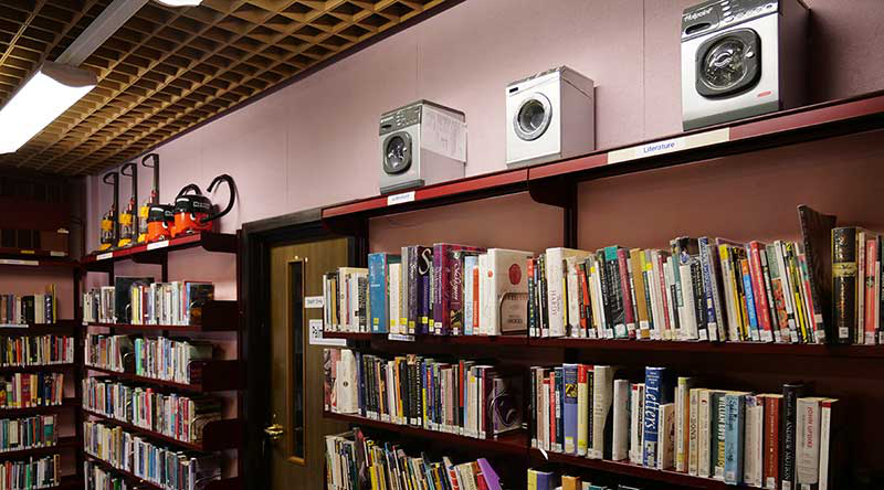 Another example of how through careful placement and programming we have started an ongoing conversation with both the local and international community can be seen in a project that London and Brussels based artist Ghislaine Leung developed from a six-month project staged at the local Reading Central Library. For ‘reading in Reading’, artists David Raymond Conroy, Ghislaine Leung, Cally Spooner and Jesper List Thomsen[48], were invited to respond to the hosting institution, the Reading Central Library through the use of various narrative structures. The artist, on working in the library, became acutely aware of the difficult and sensitive situation of council-run libraries in times of austerity and council cuts to libraries and their services, and as has been experienced in Reading, where opening hours, events and stock have been drastically reduced. This is happening a the same time as the University of Reading is investing into the university library, refurbishing, and re-stocking resources. Collectively the artists created and wrote what they named a ‘SUPERSTRUCTURE’, a framing device which hosted the group’s activities and operated as a tool to devise a number of expanded readings, events which took place over the course of six months. The ‘Superstructure’ launched Reading Central Library’s external amphitheatre, performed by a group of teenagers from a local drama group following a workshop with the artists and published in the local newspaper Reading Chronicle.[49] Over the course of six months, artist Cally Spooner worked with the teenagers again to create a jingle for the local library, which was produced and broadcast by local TV station BBC Radio Berkshire and played once a day at the library, as an ‘intangible’ public artwork and a practical advertisement for library services. Jesper List Thomsen spent time in residence at the Reading School of Art and worked with students to create a new painting and public artwork, installed as a tabletop in Reading Central Library, replacing an existing top for a 12-week duration. The painting/table played host to a series of readings by the group of artists over the course of the project, but also functioned as a table in the day-to-day life of the library. The project of Local Studies artist Ghislaine Leung was installed on the first and second floors of the Central Library, and featured duplicate materials from Reading’s Toy Library, Audio and Reference Collections, which were presented on library furniture. In order to borrow materials from the Toy Library for the exhibition’s duration, new toys were bought to replace and add to the loaned ones, which then entered into the library’s collection after exhibition. These materials collectively formed a new work by Leung, ‘Public Sculpture’, which became available for exhibition loan from the Toy Library after the closing of the exhibition, as well as each individual toy being available for standard library loan. A unique catalogue publication by Leung is being developed in collaboration with students from the University of Reading following a writing workshop and including photos of the exhibition to be made available for reference only in the Local Studies Collection after the exhibition. Following the exhibition and subsequent reviews,[50] Ghislaine promoted the project to a number of international exhibition projects. Most notably, ‘Public Sculpture’ was loaned by Fri Art, Centre d’Art Contemporain, Fribourg[51] for an exhibition that addressed ‘working conditions, hierarchies, security, the authority of institutions, that of a position, status, solidarity, injustice, precariousness, circulations, endangerment, deconstruction, manipulation, flight, submission, independence, power or again representation’.[52] Public Sculpture was loaned by the gallery for an exhibition fee of £300 paid to the library, thus enabling the gallery to produce a small income.[53] As Library manager Simon Smith confirmed, this comparably small amount makes a difference to the library. [54]