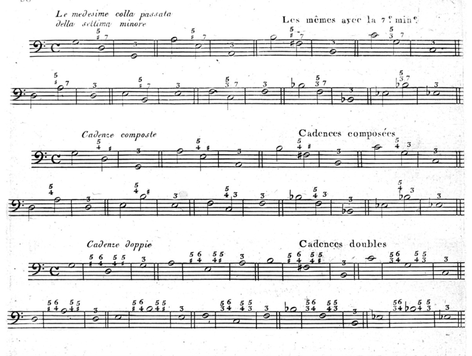 To understand the principle of these cadenzas, it is good to practice them on their own, but it is also worthwhile to practice adding embellishments and diminutions to create variety and flexibility in one’s improvisations. Figure 4 shows a series of ways drawn up by Vincenzo Lavigna in which the cadenze semplice could expanded on melodically: