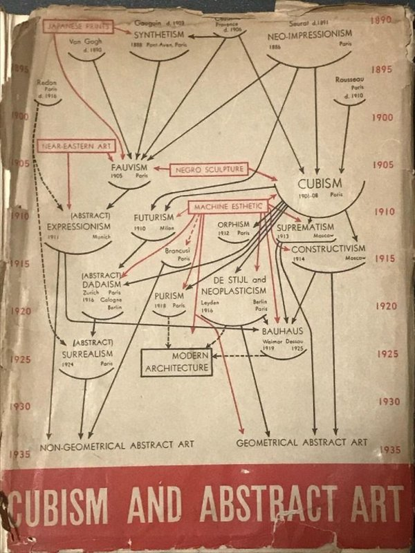 Looking at Alfred Barr’s chart (Figure 21), we can see how the different movements of Post-Impressionism of Paul Cézanne (1839-1906), Paul Gaugin (1848-1903), Vincent Van Gogh (1853-1890), and Georges Seurat (1859-1891), created the point of departure for the large number of movements that came to define the Modernist era. One of these directions stemmed from Van Gogh’s reaction to the “detachment” of Impressionism, reclaiming expressionism in paintings by creating “frenzied canvasses, passionate pictorial outbursts, saturated colors.”13 This lineage inspired the movements of Fauvism and the Expressionism, that, through color, gave insight to the “emotional and psychological states” in “all phases of contemporary life.”14 Norwegian artist Edvard Munch (1863-1944) anticipated this movement in his Scream (Figure 20) which could be interpreted as the cry that foresaw the distress of following decades. In the same vein, paintings like Street (Figure 22) by Ernst Ludwig Kirchner (1880-1938), which showed an image of the everyday crowd in Dresden, exhibited the “alienation wrought by modernization” by the intense use of color and by depicting the crowd with mask-like faces.15
