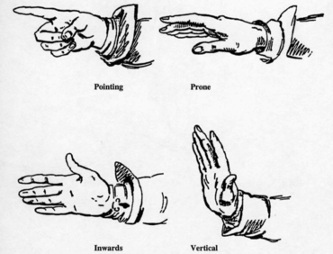 “The movement of the right hand must suit the nature of the actions of which one speaks. For example, one must say “attract” while drawing the hand into itself; “repel” while pushing the hand away; “tear away” while separating the hands; “unite” while joining them together; “open” while opening them; “tighten” while clasping them together; “to raise” while raising them; “to lower” while lowering them, etc. . . .” [2]