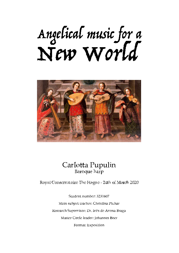 CARLOTTA PUPULIN Baroque Harp Supervisor: Dr. Inês de Avena Braga Title: Angelical music for a New World Research question: How did music develop in Hispanic America between the XV-XVII centuries?