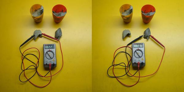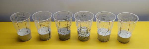 Three component casting comparison tests. Various mixes and mix ratios were tested for their conductivity to bridge between the ground and the electrode. Materials included various aluminium phyllosilicate clays as well as portland cement mixed the conductive graphite powder. For the final setup employed a Greek Aluminium Phyllosilicate clay, mined on the island of Milos and refined in the Netherlands for North Sea oil and gas exploration. The Milos clay was repatriated to Greek soil for the Agora Circuit installation.