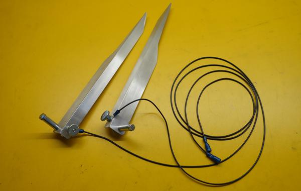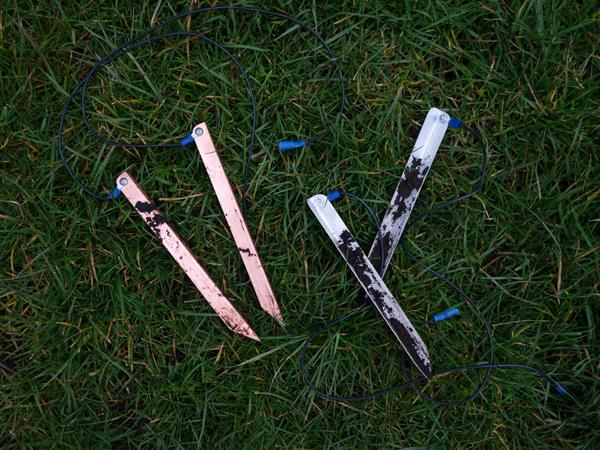 Various metal types tested for telluric current signal acquisition. Conductivity tests for copper and aluminium dipole electrodes.