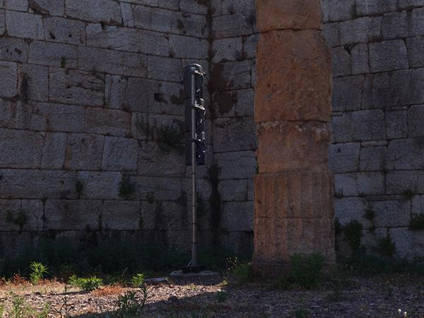 Recording of live telluric currents at Messene convolved with two-channel reconstructed impulse response (position 20 AB) of the northern stoa, 00:01:22