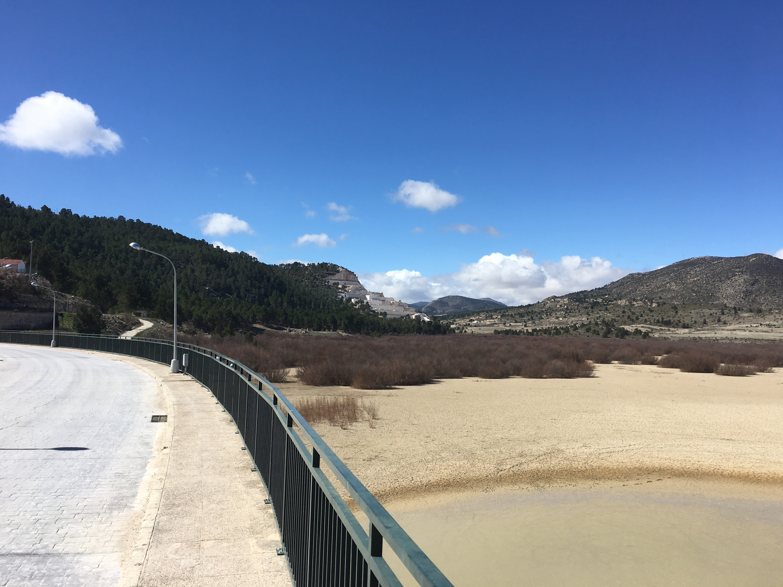 I continued down to the shores of the reservoir. Reeds and shrubland had long replaced the pools of water, as the reservoir had dried up decades before. Standing oddly and ominously out of the reservoir, as a barrier to the possibility of flash floods, was what Simon called the ‘Fascist Dam’. Meticulously and uniformly engineered, it contrasted against the desolate landscape. Built as a flood defence for the flash flood-prone city of Lorca, it now mainly provides a road link between the bordering regions of Murcia and Andalusia.