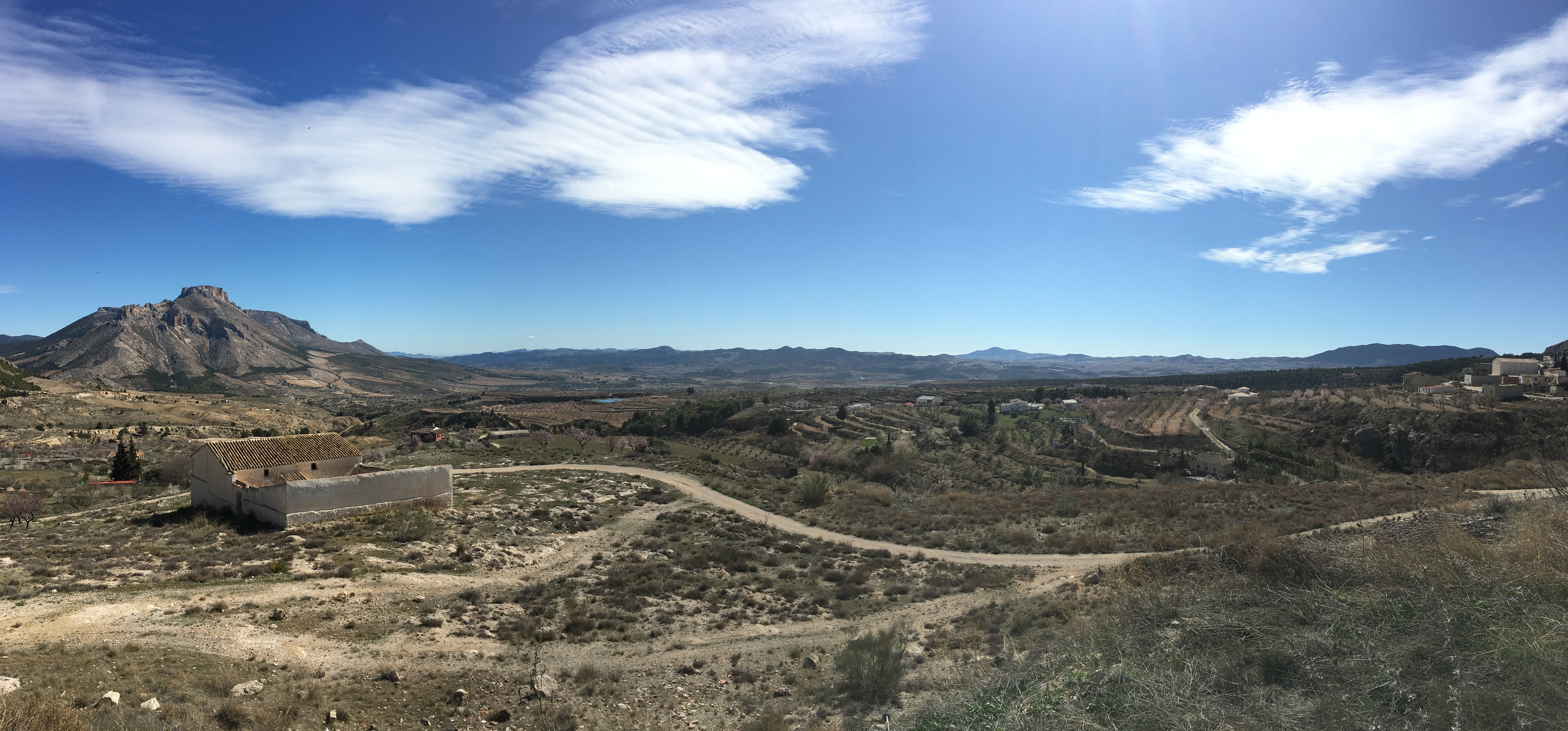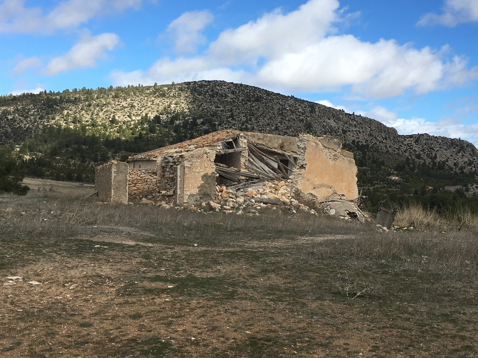 A clearer, warmer day meant I could venture further toward the abandoned farmhouses around the perimeter of the Embalse de Valdeinfierno, the nearby reservoir. On the dirt track, I headed east towards the border of Andalucía and the Region of Murcia. Collapsed stone buildings were dotted along the path. Fallen timber, smooth and silvery through weathering, jutted out from piles of rubble from the dilapidated structures.