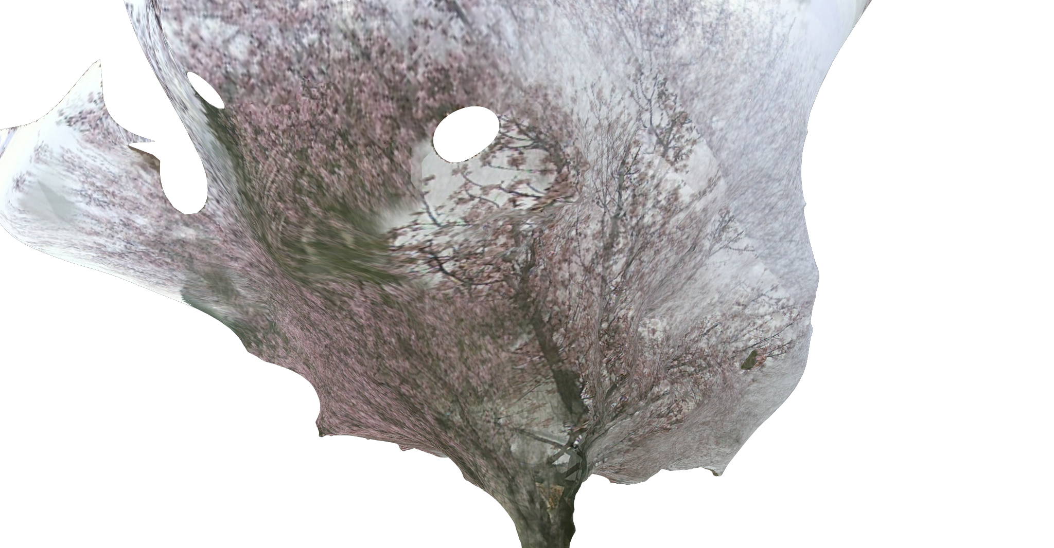 Floating parts of the blossom appear disembodied from the tree.