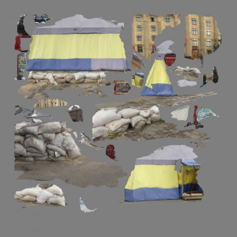 Hito Steyerl, Tent / Texture II, Kharkiv, 2015. Description: Photogrammetric texture jpeg from 3D scans of Ukraine battle sites.