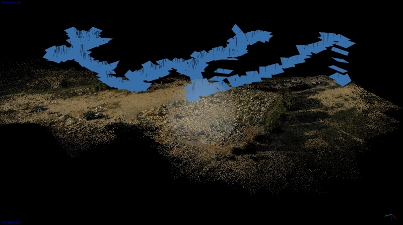 Ariel Caine's project with Forensic Architecture. View of point-cloud terrain of alAraqib looking at the Bedouin stonehouse of Al Malahi Salman Abu Zayd.