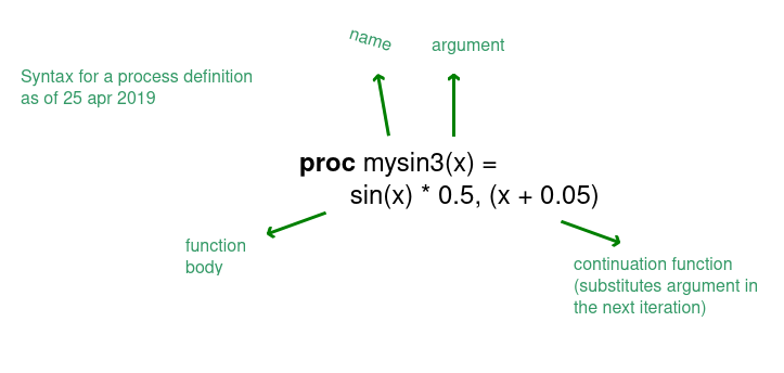 {hhr, 190424} what I find peculiar about this short demonstration is the complexity of the sound and the brevity of the code that produces it, with no direct link from reading the few lines of code to an (accurate) assumption about the sound that we are going to hear. This brevity somehow reminds me of James McCartney's new language 'sapf' (mentioned in initial conversations).