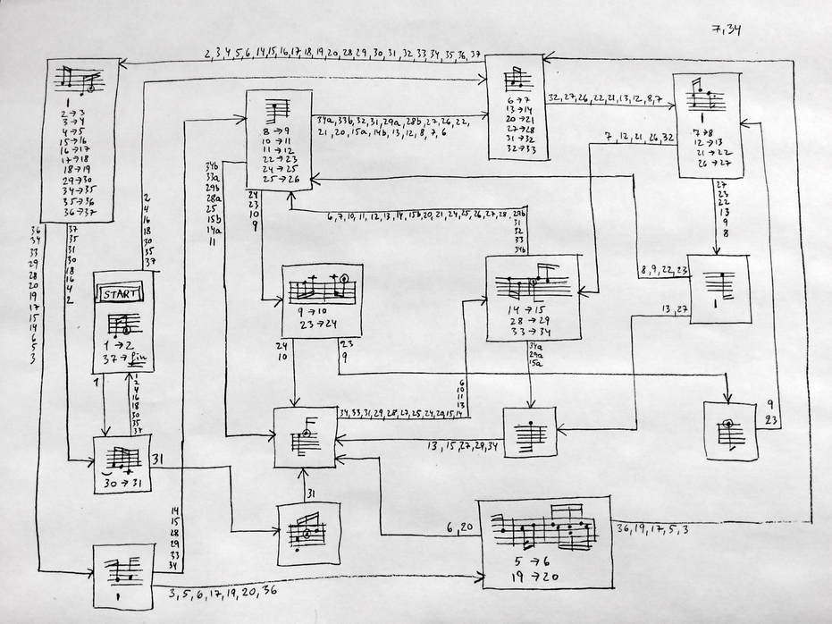 Morten Levy’s illustration of how he understands the fiddlers’ complex variability patterns in the performance of rammeslåtter in Setesdal (Levy, 1989, p. 101).
