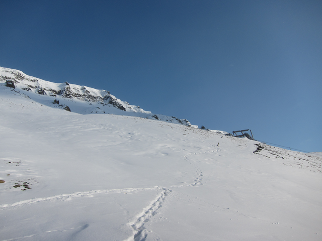 and thought I saw something white and furry in the snow up above me in this mountain side.