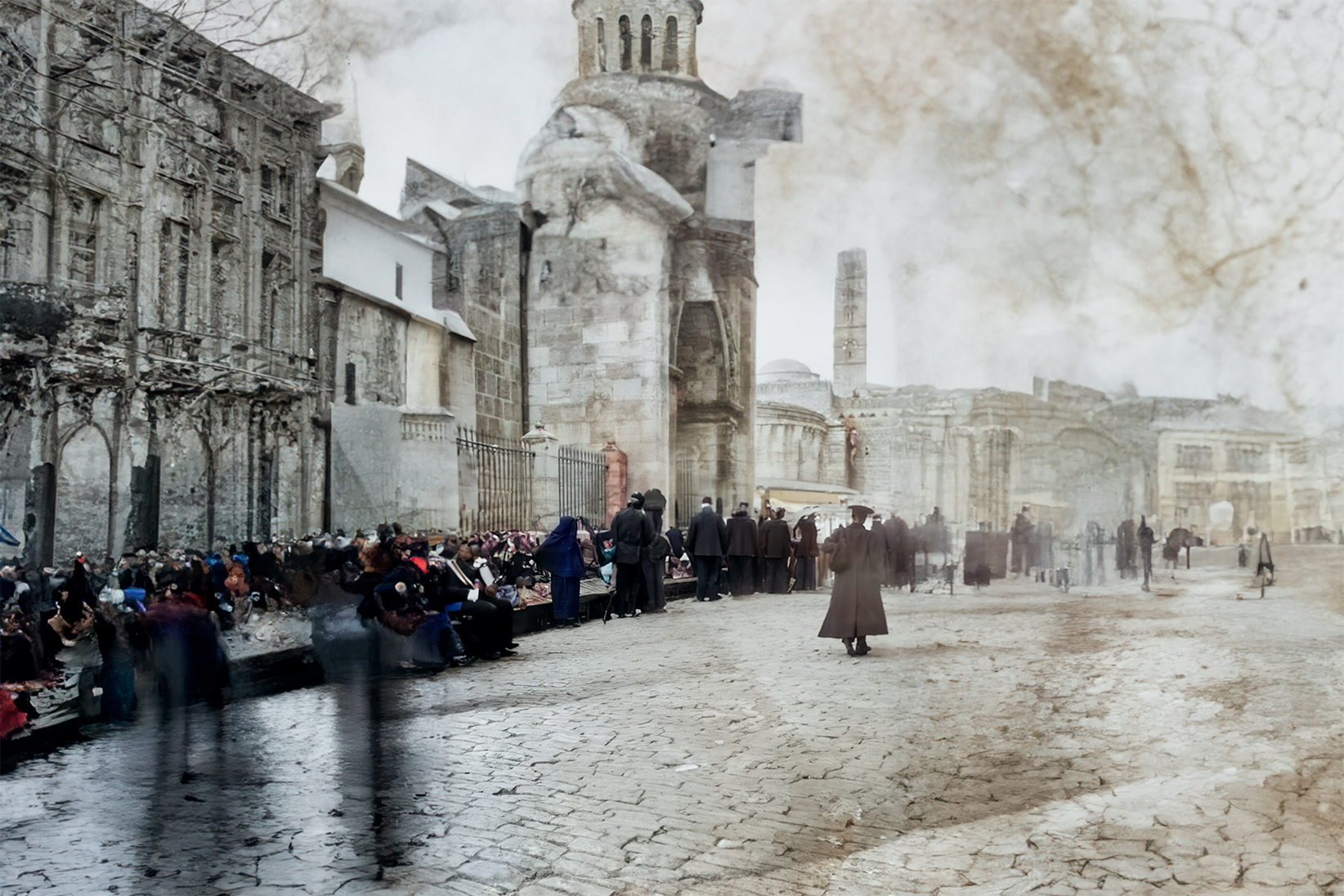 February 2023, we were in Jerusalem and Bethlehem. It was before the latest escalations of the conflict. During our time there, a car drove into a bus stop full of people. Tens of thousands protested against a judicial reform. Layers of religious artefacts and narratives competing in contested spaces and disputed land. On our return, we were numb, without the ability to respond. All the images that were recorded during those days, were inadequate, empty, flawed, unable to speak of the tension and layers of incomprehensibilities. ( nysanses and coplexsitities) They failed in articulating or even touching the depth and complexity of the political and historical entanglements surrounding these places. We questioned if or how we could transform this state of "inability" into art. In an effort to address this ambiguity, we turned to The Picture Collection. By examining historical images with their inherent faults and utilising algorithms in Generative AI, we found a way forward to explore these incomprehensible tensions. Through the engagement in making art, we are able to suggest an intensity with some of the complexities, rather than simply relying on empty reassurances of “It will be fine”.