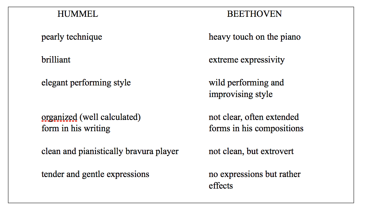 Comparing the lighter Hummel style with the heavier Beethoven style,