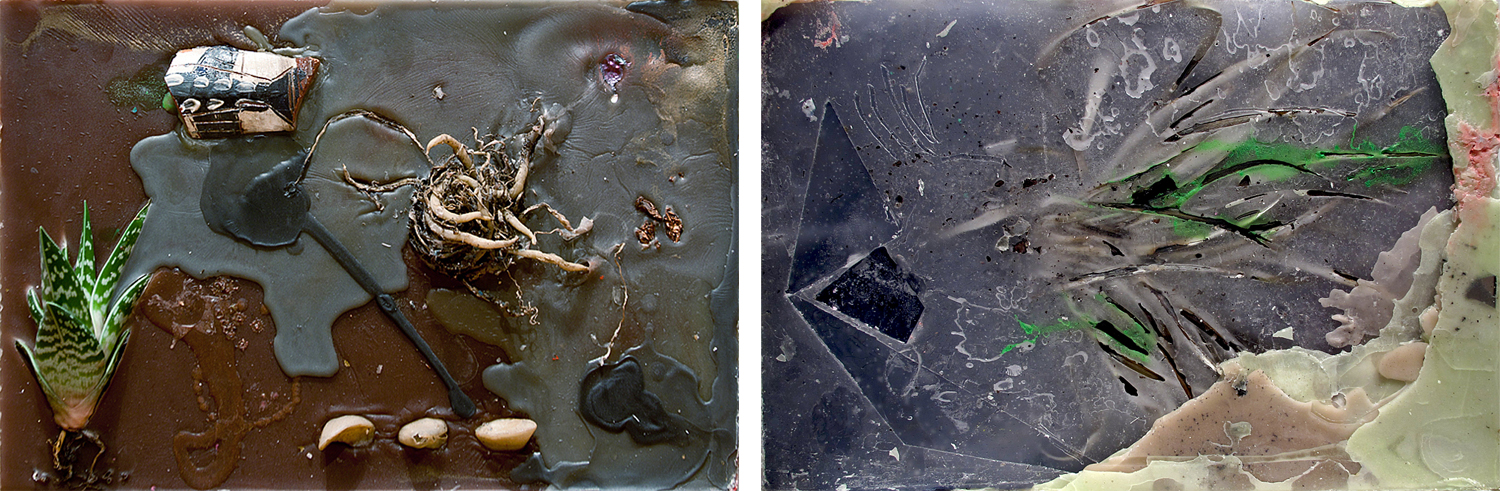 Nonhuman, invisible potencies are alarming: whether those potencies exist underground, or inside plants, as vegetables presumed inert while thriving in secret. Potatoes appear to rest, dormant and dead in the gallery space. Yet as time passes they erupt with unpredictable boils and bumps, shrivelling in parts as they bloom in others with inborn, grotesque, anarchic life.