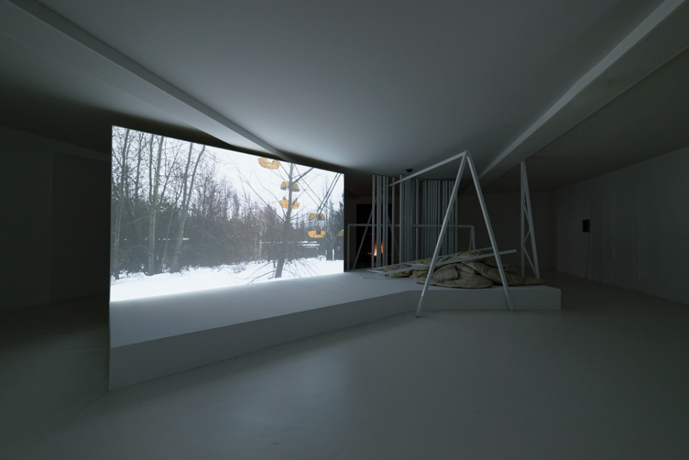 Top and Bottom: Angelika Markul, Bambi à Tchernobyl, 2013. Installation view, Terre de Départ, Palais de Tokyo, 2014. Photograph by Aurélien Mole.