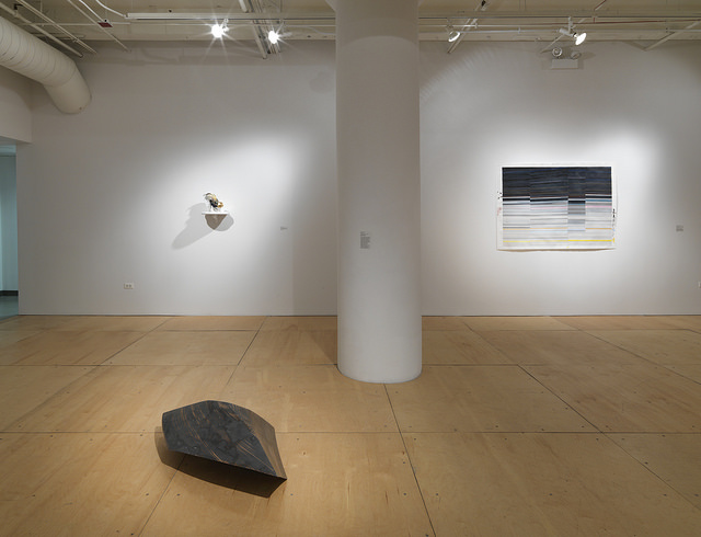 Ghost Nature, installation view, Gallery 400, Chicago, 2014. Left to right: Marcus Coates, Jeremy Bolen, Sebastian Alvarez, Assaf Evron. Photograph by Tom Vaneckye.
