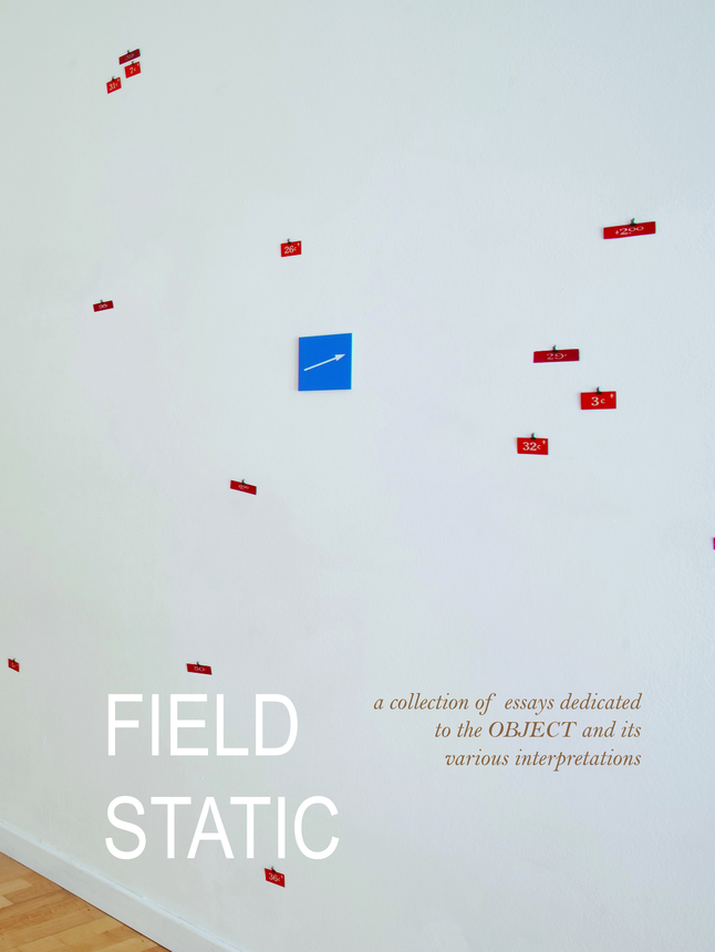 Above: Field Static: A Group Show About Objects, co-curated by Devin King and Caroline Picard, installation view, Co-Prosperity Sphere, Chicago, 2012. Below: Field Static: A Collection of Essays Dedicated to the Object, exhibition catalogue, Holon Press, 2012.
