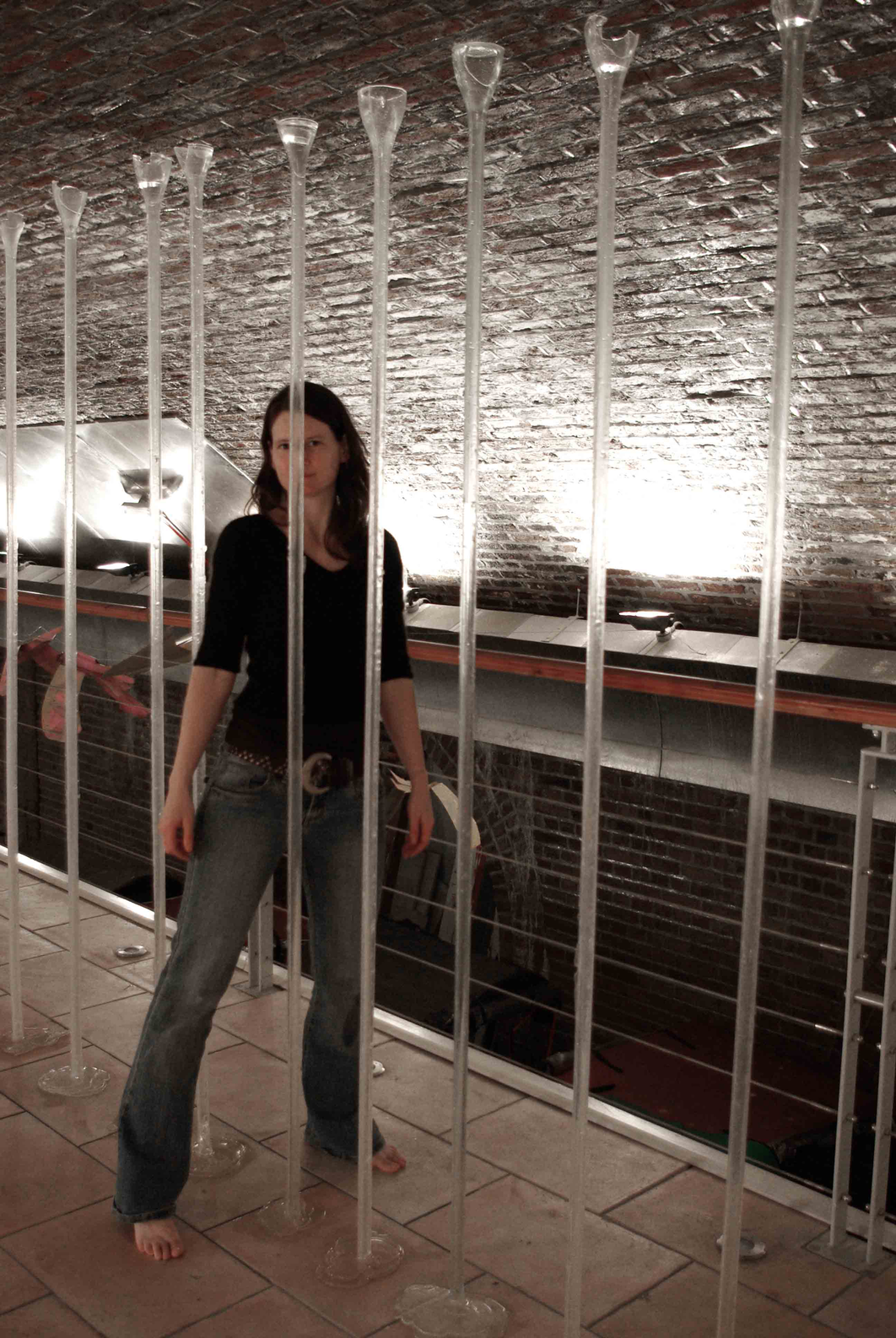 The artwork to the left, risk 2011, and a later version Celebration 2015 are the central focus of this exposition. They are made of glass wax cast into the form of 8-feet-tall drinking glasses (shown here filled with water but in the later version filled with champagne). risk 2011 was exhibited at Rickshaw House Gallery in London and Celebration 2015 was exhibited at Unit 24 Gallery in London. This exposition is split into six short sections that each reflect on different experiences leading to the development of these artworks.
