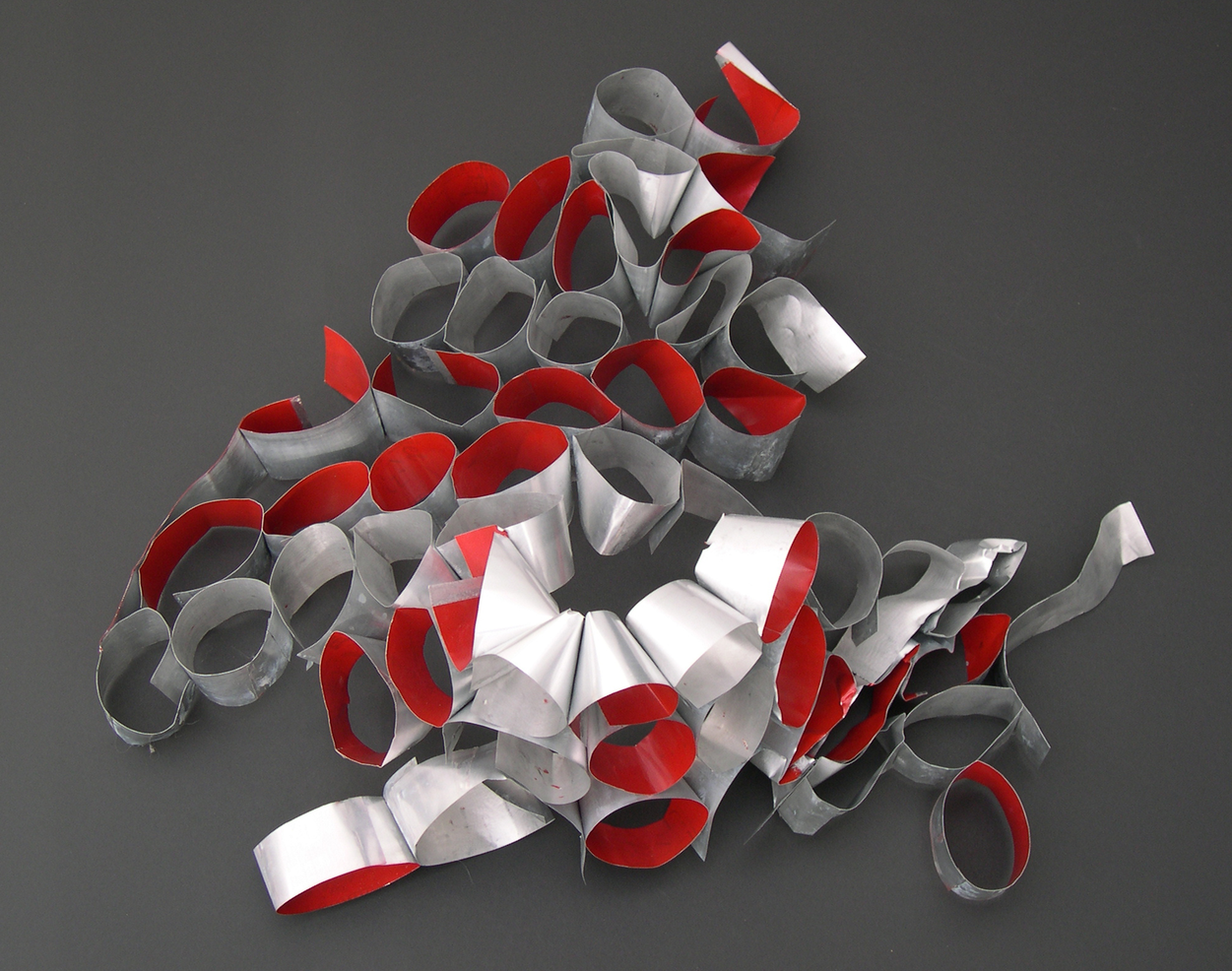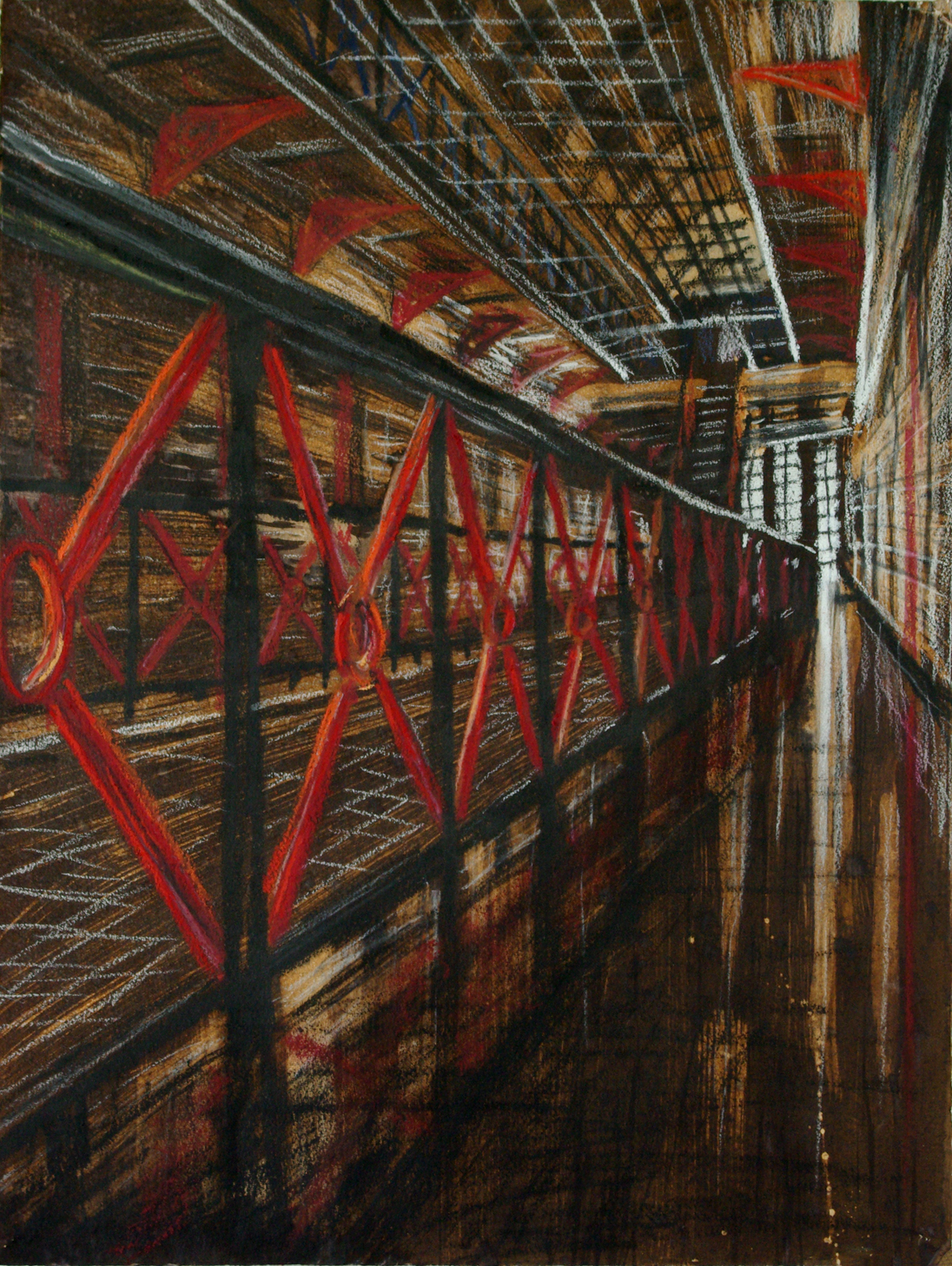 Prior to breaking bones I had been working on repeated structures made from coke cans. This work explored boundaries and breaks between interior and exterior space. My position teaching art at Reading Prison gave me access to research the space. I was inspired by the meshes and bars that, in combination with regulations around movement, enable control and restriction. Clear sight lines across the panopticon space accentuated the restriction as you could see where you wanted to go but had to take a circuitous route to get there.