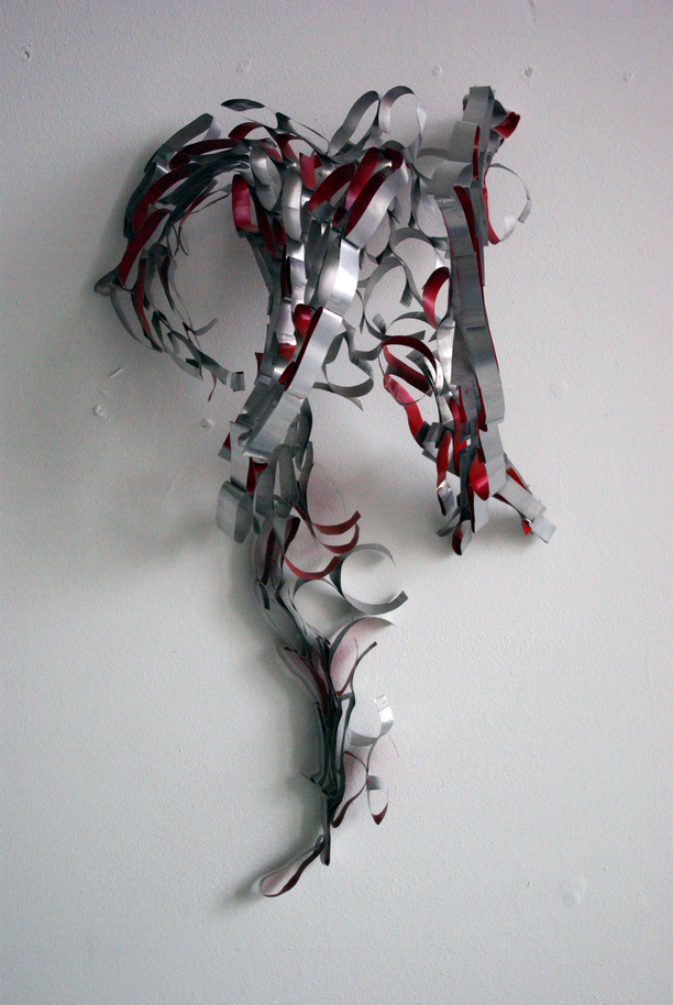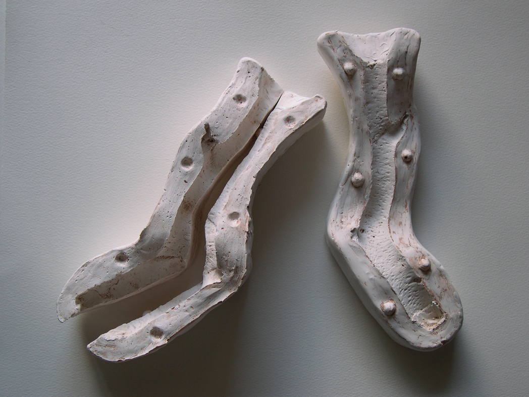 When I returned to my studio again and looked at these sculptures I could not identify with them at all. I was in a completely different place to the one when I had started making it. Of all the pieces in my studio constructed prior to breaking my bones there was only one with which I could identify. This was a broken sculpture that the roof of my studio had fallen on and squashed. The perfect wholeness of the other pieces was frustrating, I felt revulsion for their perfection because it seemed unreal, posed and fake. I no longer viewed this aesthetics of wholeness that I had strived for as natural but rather as a construct that now felt alien. I wanted to break and twist them and destroy their sense of wholeness.