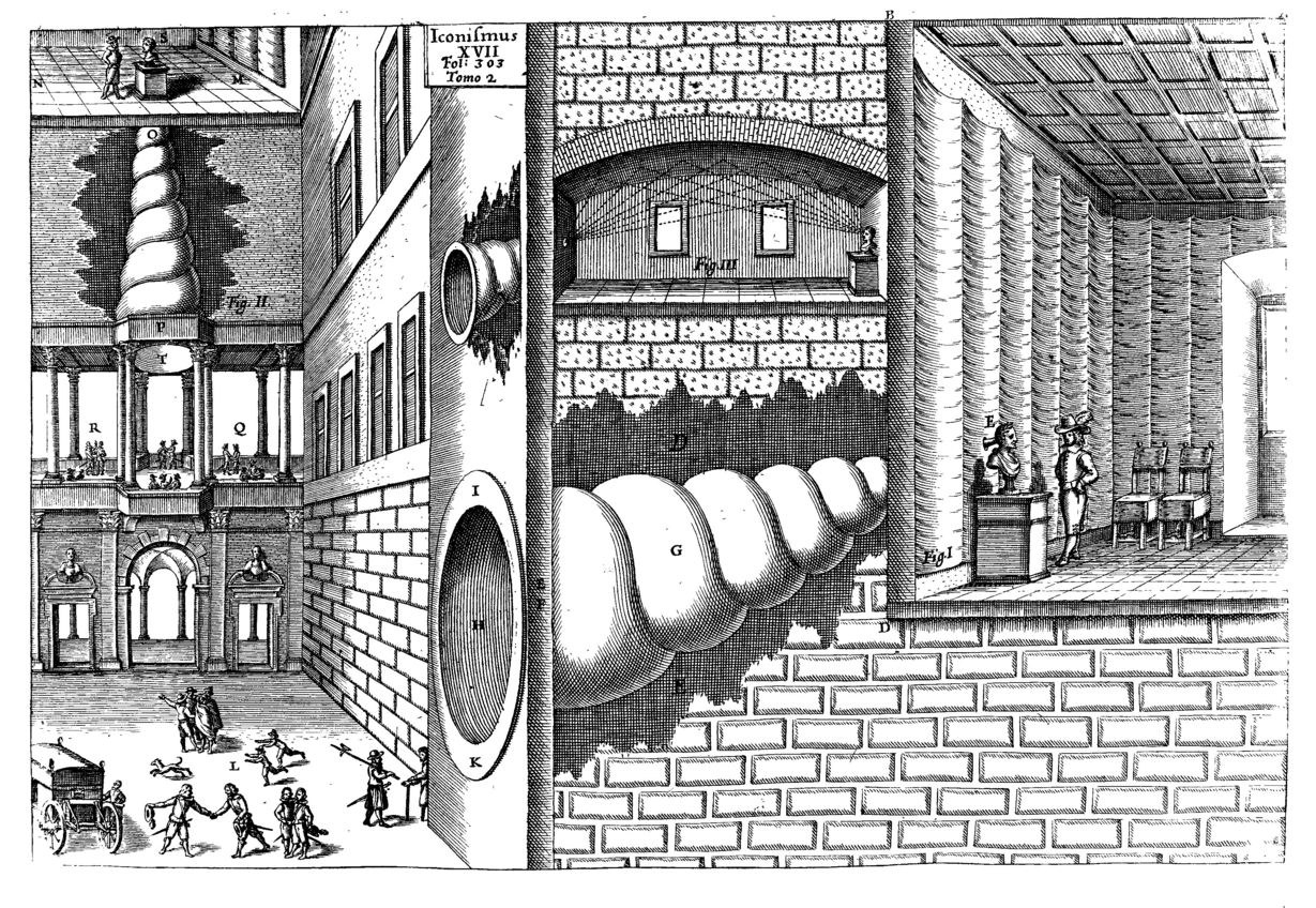 If Wolfgang von Kempelen’s chess-playing automaton, The Turk, now serves as a fraught emblem for the cultural politics of Amazon’s Mechanical Turk service (Irani 2013), Athanasius Kircher’s Spy Ear would surely be an apt figure for the company’s voice assistant, Alexa, and perhaps even our entire post-Snowden era of ubiquitous surveillance, smart devices, and web tracking. Kircher’s 1650 proposal for a gigantic listening system that could funnel the sounds of a city plaza up to the spying ears of Roman courtiers is a popular early touchpoint in histories of surveillance. And the recent explosion of speech agents like Alexa has made the Spy Ear seem especially contemporary. Consider: anthropomorphized regurgitations of public life pumped through thick coils of occluded infrastructure. The description works just as well for Kircher’s proposal as it does for smart devices and their integrated voice assistants and, of course, for all the eavesdropping such devices perform.