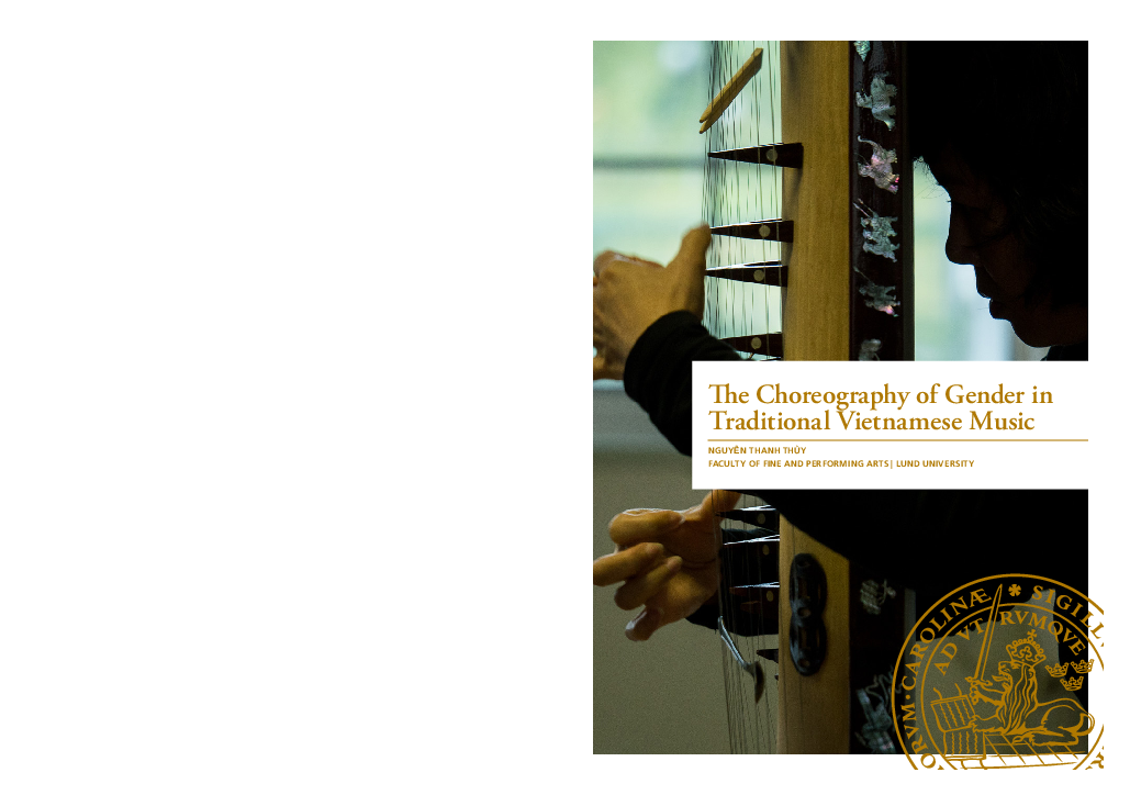 This Ph.D. project in artistic research is concerned with the function of gesture in traditional Vietnamese music. Building on gender analysis of musical performance in TV shows, and further on autoethnographic inquiry throughout the artistic projects, the artistic output articulates a critical understanding of these practices. The aims of the project are to investigate the social function and meaning of musical gesture in traditional Vietnamese music, and to develop artistic responses that articulate an individual voice. The research questions that emerge from these conceptual and artistic aims are: 1. What gender conventions can gesture analysis of musical performance unveil? 2. In what ways can music created through the choreographic structuring of movement reveal and question gender conventions in musical performance? 3. How can my performance, in intercultural and interdisciplinary artistic collaborations, challenge current gender norms and instigate change in practices of traditional Vietnamese music? The method and design of this Ph.D. project builds on qualitative analysis of gesture in musical performance, with particular emphasis on employing a gender perspective in this analysis. In the artistic work, analysis of gesture has constituted a point of departure for the creation of a series of intermedia works that seek to develop methods that combine the practices of choreography and musical composition. Intercultural collaboration has provided particular challenges and possibilities in the development of each of these works. The results of the artistic work are published online in The Research Catalogue. The outcomes of the project outline how gendered gesture is taught in higher music education in Vietnam, and taken together with the historical overview of how nationalism and communism has shaped the country, that this teaching has an immediate relation to nation branding. The teaching of traditional music is equally related to the commercialised views of women as it is grounded in the preservation of tradition. Further, the development of a practice of composing music using gestural-sonorous objects as material became the central artistic method throughout this Ph.D. project. It has offered novel possibilities of approaching gestural materials and creating new choreographies and music based on a critical approach to the image of women in popular media. The results finally suggest that intercultural and inter-disciplinary artistic practice can propose social change, and provide counter images of traditionally gendered behaviour.