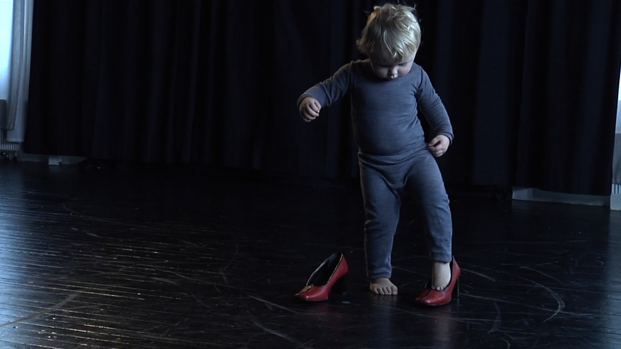 What happens when we invite small children (0- to 3-year-olds) to play in an art installation of red shoes, films, and old children’s toys and furniture?