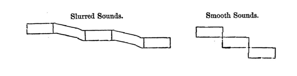 Garcia gives more specific explanation of the difference between legato singing and portamento in both his New Treatise (1856) and Hints on Singing (1894). Fig. 2.1 shows “slurred sounds” or portamento, which Garcia explains “is to conduct the voice from one note to another through all intermediate sounds” with “continued pressure of air.”23 Contrastingly, Garcia’s “smooth sounds” could be interpreted as instantaneous pitch changes. However, due to the anatomy of human vocal chords, singers cannot make abrupt instantaneous pitch changes (such as stopping a string with a left-hand finger on the violin) and will always pass through all the divisions of each pitch change, subtle or not. As such, I would interpret this indication as a “smooth” subtle change in pitch, where the notes are still connected but without obvious or drawn-out sliding between notes.