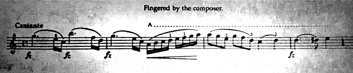 Figure 2.8: Schubert’s Sonata for Violin and Piano, Op. 137, No. 3: Trio.60 David’s fingerings indicate that the opening 20 bars of the Trio melody should to be played completely on the A string.