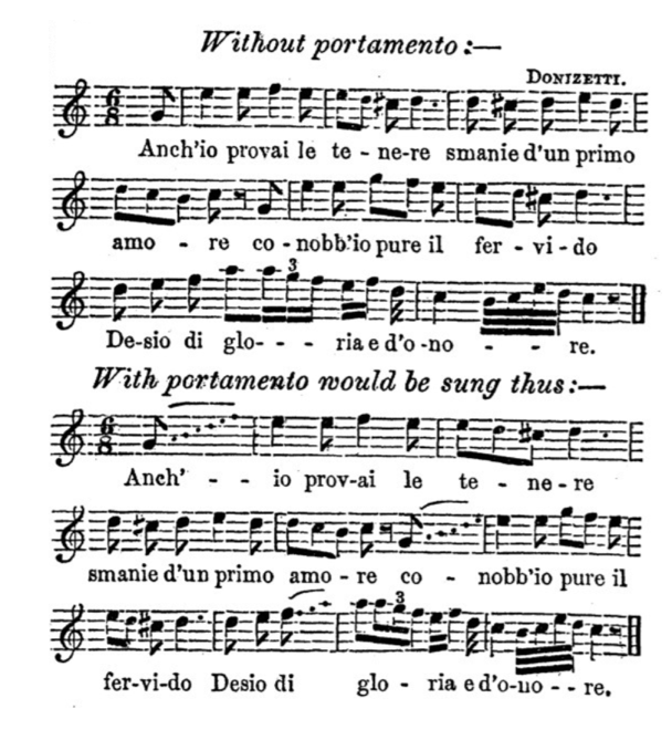 Even though portamento was fundamental to the art of stylish singing, the notation and application of the expressive device in treatises was not consistent.18 Therefore, we must define the differences between legato singing and portamento in order to better understand the expressive tool.