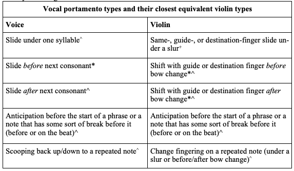 Types of portamento found in early vocal and violin recordings