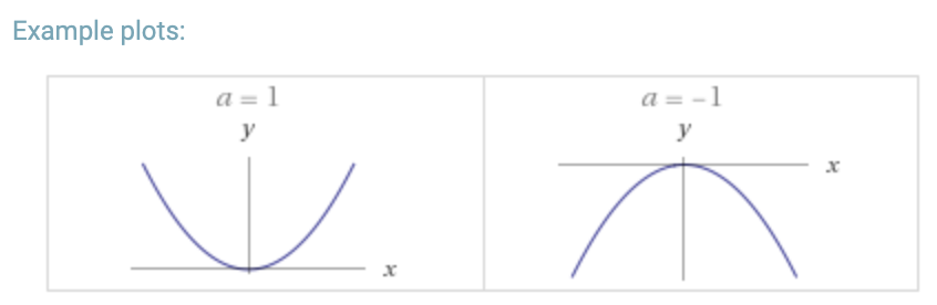 Technical definition: Equation in the form y = ax2 = bx + c