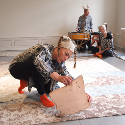 Arbeidet startet i musikken. Musikerne dannet det metodiske springbrettet i prosessen, i form av inngående kjennskap til skapende improvisasjon og samspill. Trommeslageren Tor Haugerud har vært en fast samarbeidspartner i Teater Fot siden starten, her i samspill med sangerne Siri Gjære og Rohey Taalah / Sunniva Hovde. Musikerne hadde med seg musikalske ideer og små komposisjoner som vi øvde inn sammen. I samspillet har musikalske improvisasjonsprinsipper smittet over på det fysiske og teatrale arbeidet. Skuespillerne Siri Schnell Juvik, Gunhild Hjertaas og Ibrahim Fazlic har sammen med musikerne utviklet et samspill der, musikk, kostymer og objekter ble aktive agenter på scenen. Musikk, sang, og handling fikk utvikle seg sammen med materialenes mer abstrakte former og bevegelser.