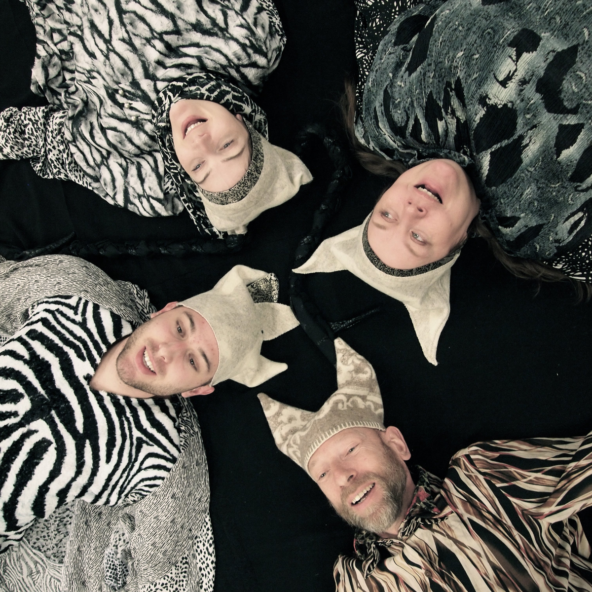 Hvert hjørne av denne firkantede og bevegelige lagkakeverden betjenes av en perkusjonist, en eller to sangere og skuespillere; 4 aktører på scenen. Samspillet bygger på våken tilstedeværelse. I samspillet og mellomrommet mellom fugl og fisk, mellom hummer og kanari, er det viktigere med nærvær enn noter og partitur.