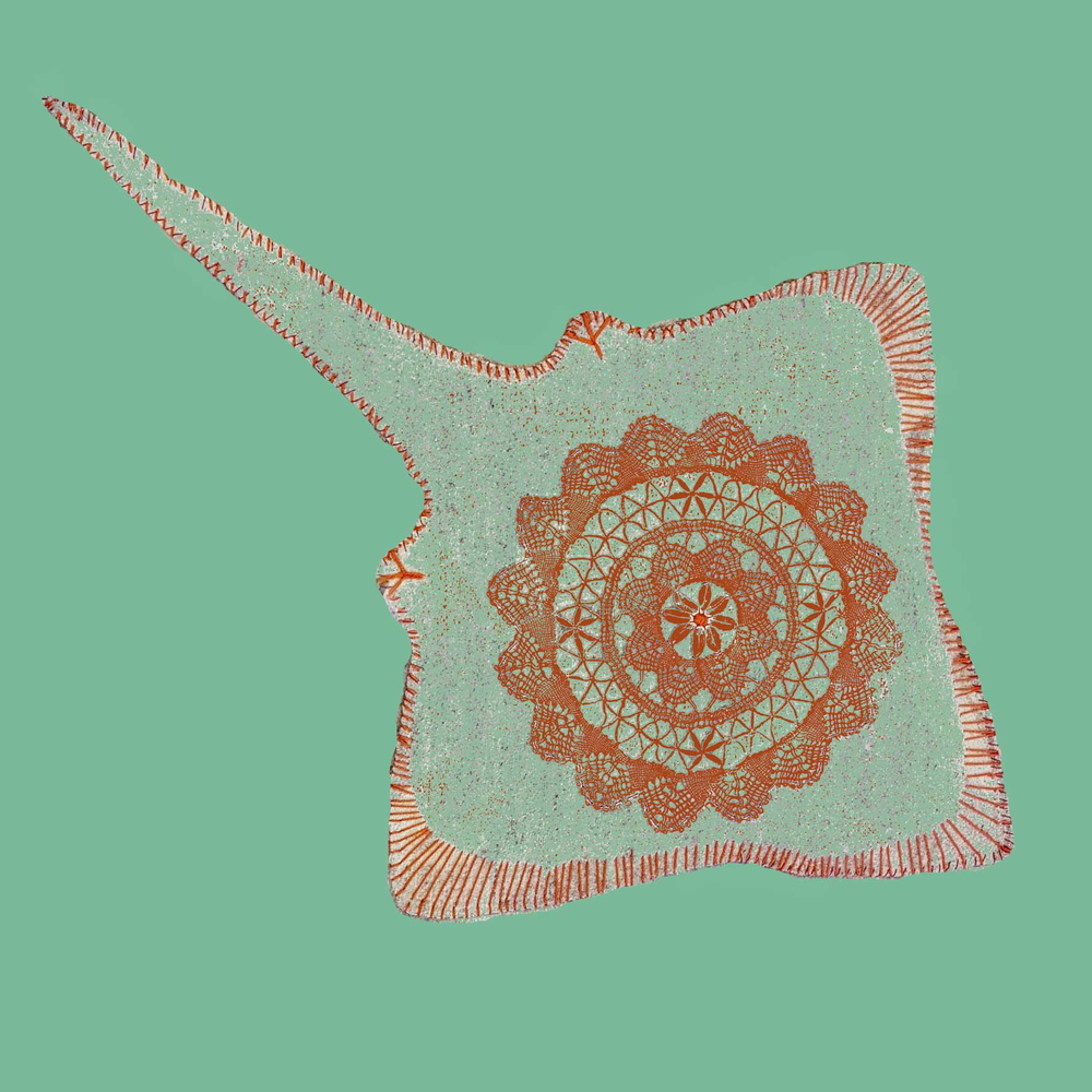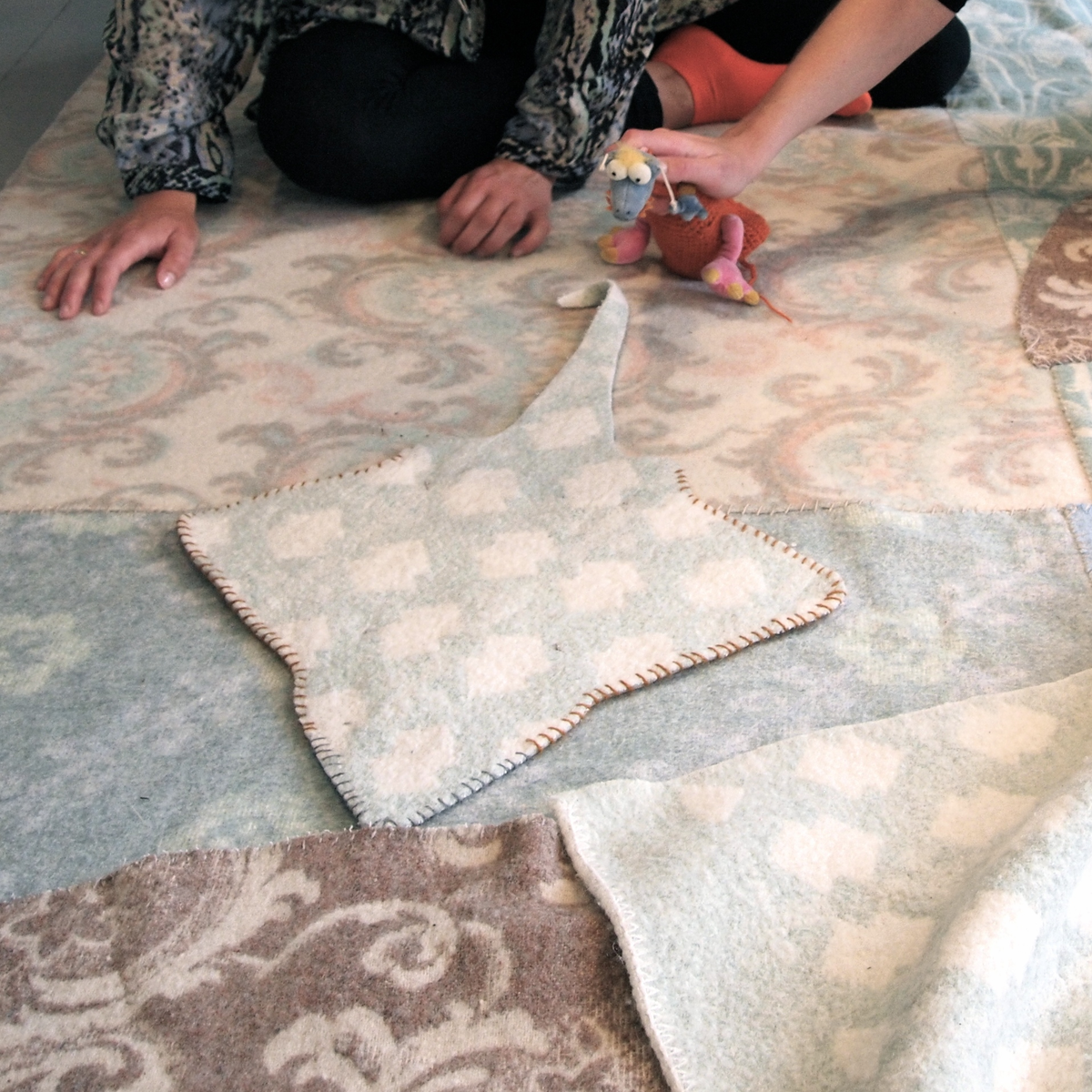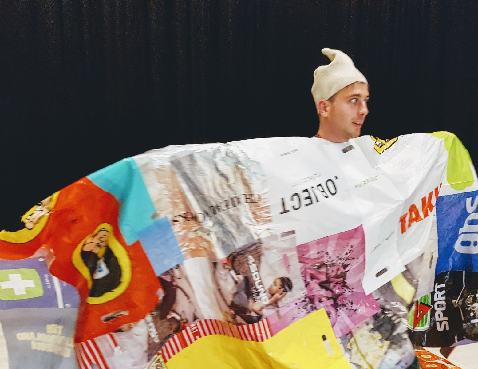 I vårt konkrete arbeid med scenografi og kostymer, brukte vi blant annet gamle ulltepper som havbunn og heklede duker som koraller og flate dyr på havets bunn. Kostymene var også gjenbrukte og omsydde "tanteklær" med abstrakte mønster av pels, skinn, fjær eller skjell. Disse konkrete plaggene ble samlet fra fjern og nær, med hver sin egen produksjonsprosess bak seg, før de havnet hos oss. Klærne ble satt i spill av skuespillernes kropper og bevegelser, og tilpasset av kostymedesigner Berit Haltvik With underveis. Materialene beveger seg og påvirkes av musikernes rytmer og sang, som igjen påvirker publikum og så videre. Denne kunstneriske sympoesien kan forstås i lys av Haraways begrep om sympoetisk samspill i biologien. I likhet med hennes eksempler på "art-science worldings", kunstprosjekter som involverer samspill mellom vitenskapsfolk, kunstnere og andre arter (Haraway, 2016), ønsket vi med dette kunstprosjektet å bidra til en større interesse for sammenhengen mellom naturen og teatret.
