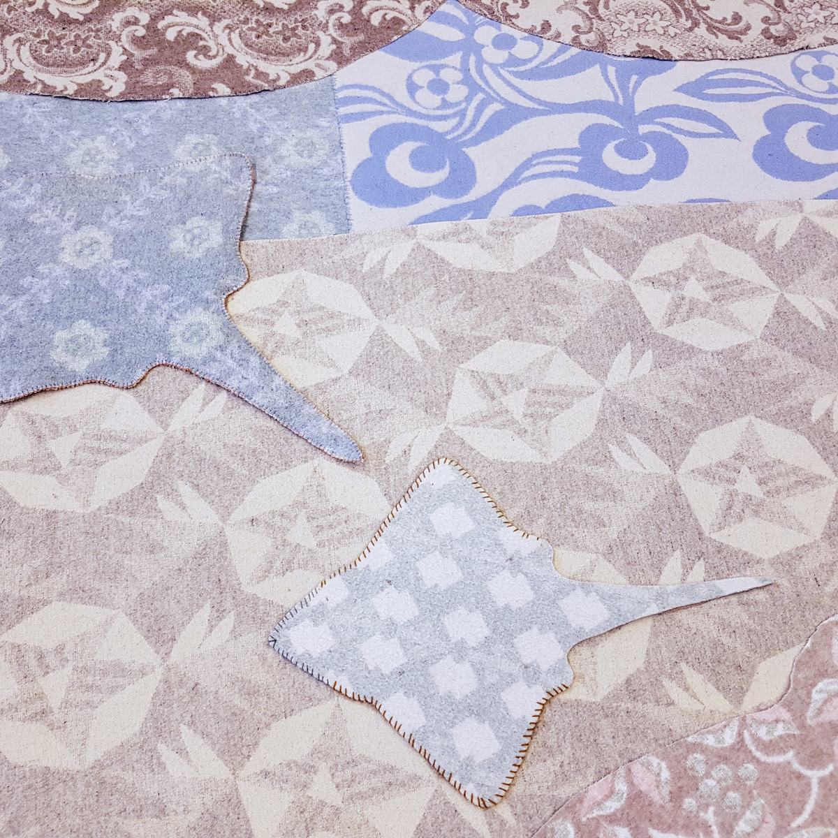 I vårt konkrete arbeid med scenografi og kostymer, brukte vi blant annet gamle ulltepper som havbunn og heklede duker som koraller og flate dyr på havets bunn. Kostymene var også gjenbrukte og omsydde "tanteklær" med abstrakte mønster av pels, skinn, fjær eller skjell. Disse konkrete plaggene ble samlet fra fjern og nær, med hver sin egen produksjonsprosess bak seg, før de havnet hos oss. Klærne ble satt i spill av skuespillernes kropper og bevegelser, og tilpasset av kostymedesigner Berit Haltvik With underveis. Materialene beveger seg og påvirkes av musikernes rytmer og sang, som igjen påvirker publikum og så videre. Denne kunstneriske sympoesien kan forstås i lys av Haraways begrep om sympoetisk samspill i biologien. I likhet med hennes eksempler på "art-science worldings", kunstprosjekter som involverer samspill mellom vitenskapsfolk, kunstnere og andre arter (Haraway, 2016), ønsket vi med dette kunstprosjektet å bidra til en større interesse for sammenhengen mellom naturen og teatret.
